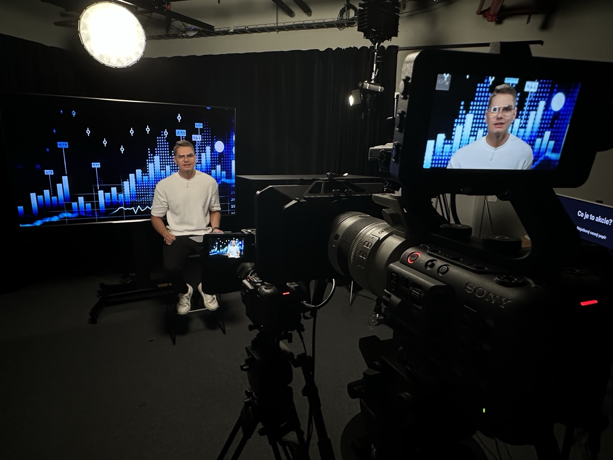 Prostor je uzpůsobený pro natáčení reklamních formátů, rozhovorů, podcastů, produktových videí i fotografických setů včetně portrétu a produktové fotografie.